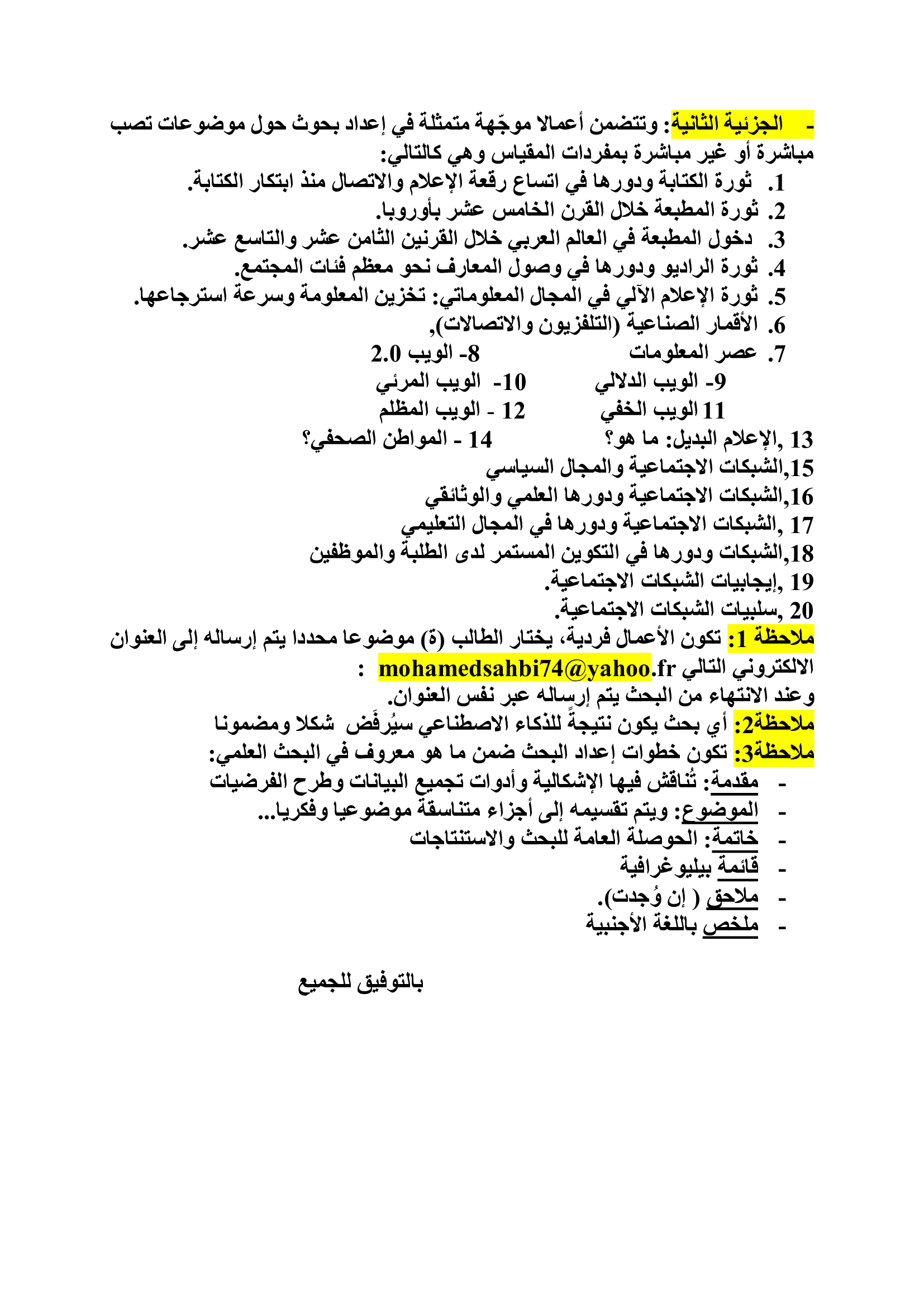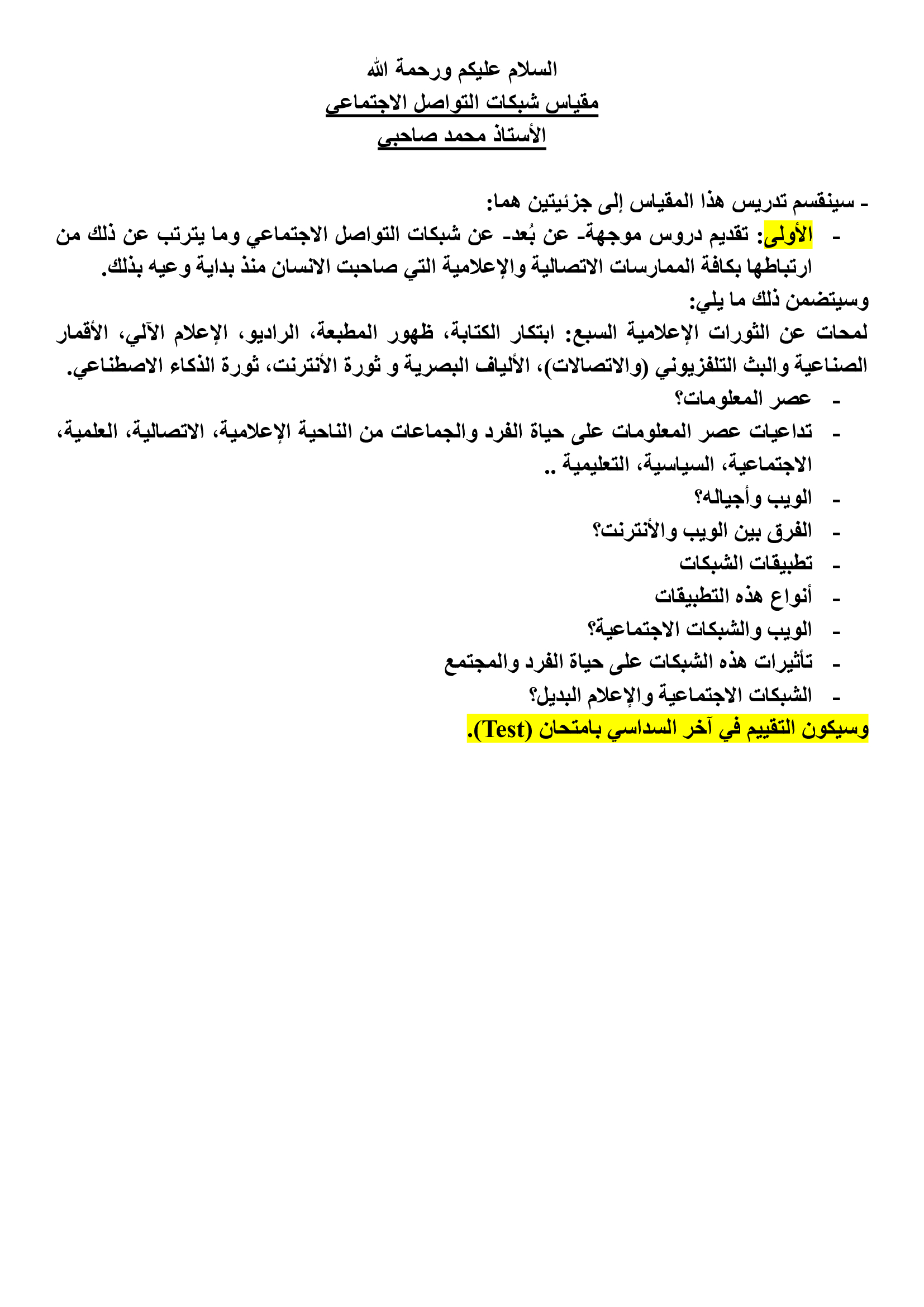 ويشمل مجموعة من الدروس حول الشبكات الاجتماعية وتداخل العناصر العلمية بالسياسية بالإعلامية وهكذا