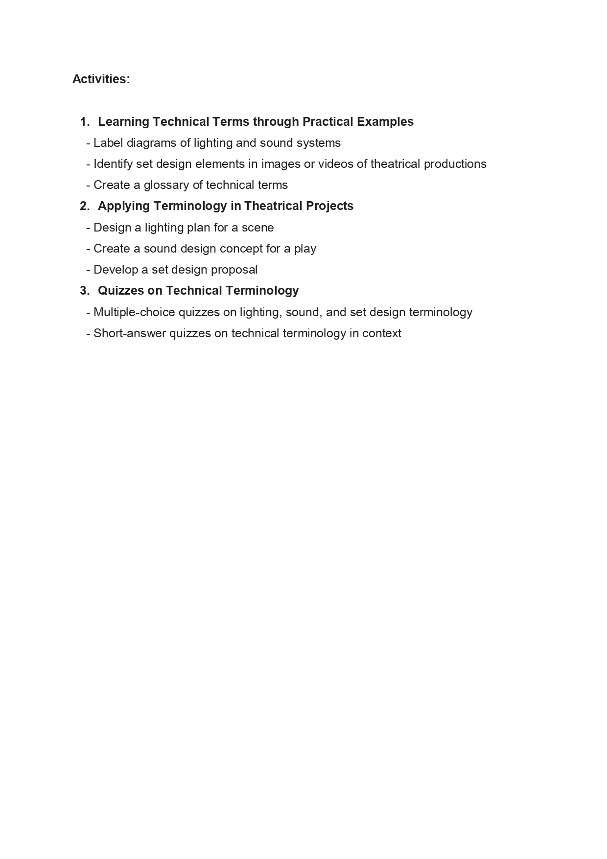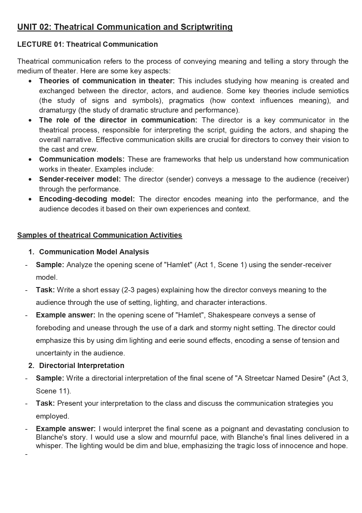 Level: M2 Theatrical direction (mise en scène)