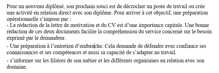 Rédaction de la lettre de motivation et élaboration du CV, Entretien d’embauche, …,