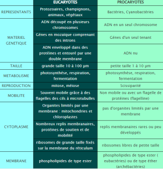 ComplémentTableau 01 : Les caractères distinctifs entre procaryote et eucaryote
